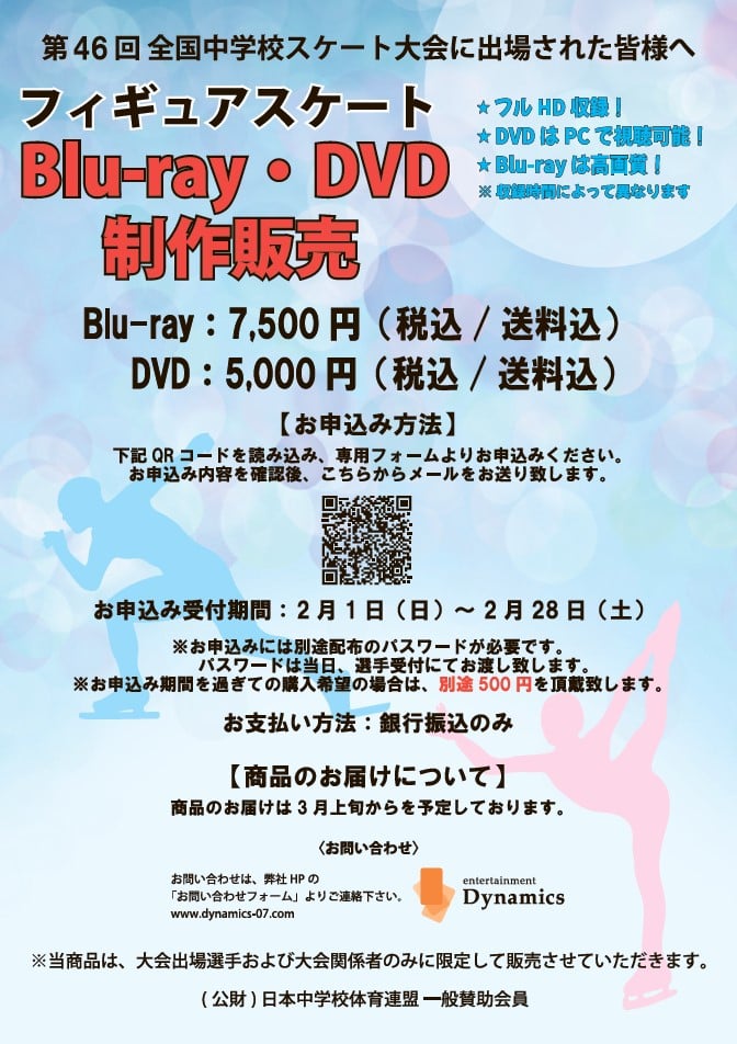 - 第46回全国中学校スケート大会(フィギュア競技)Blu-ray・DVD販売のお知らせ